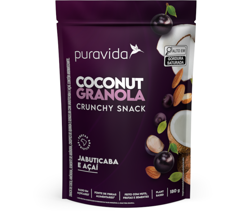 Evoluímos o conceito de snack saudável e criamos a Coconut Granola Jabuticaba e Açaí. A composição do novo sabor da granola Puravida une a seleção de ingredientes nobres e nutricionalmente equilibrada em gorduras boas, vitaminas e minerais a uma explosão de sabores tropicais.