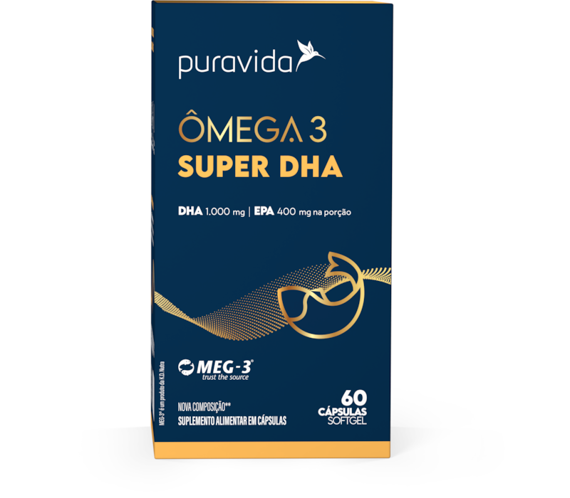 O Ômega 3 Super DHA Puravida é elaborado com óleo de peixe e contém elevada concentração de DHA. Formulado com com tecnologia avançada e matéria-prima de procedência rastreável, possui selo de qualidade MEG-3®, que reconhece o fornecimento