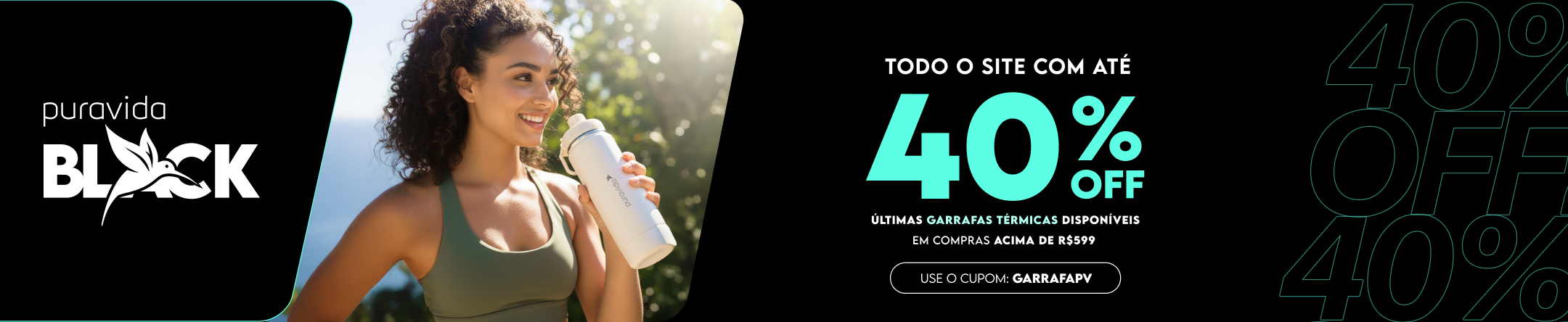 PURAVIDA BLACK TODO O SITE COM ATÉ 40% OFF + BRINDE ACIMA DE R$ 599 COM O CUPOM GARRAFAPV